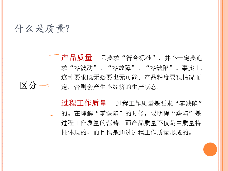 在工作中,零缺陷不僅是一種工作準則和執行標準,也是一種工匠精神。零缺陷意味著要從內心追求精益求精,要求組織中的每一個成員都要在工作中下決心做到完美無缺。 “零缺陷”的思想是一種新的思維方式,是一種工匠心做事心態,是企業參與國際市場競爭的有力保障,也是提高個人能力和公司整體素質,最大限度地發揮公司整體功能,弘揚公司企業文化的契機。無論是個人還是組織,只有追求產品的“零缺陷”,才能長久地在該領域立