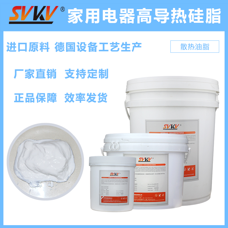 SVKV索科家用電器高導熱硅脂,以聚硅氧烷為基礎附以高導熱填料精制而成,安全環保,性能穩定,具有優異的電絕緣性和導熱性,揮發小,可薄膜涂覆。