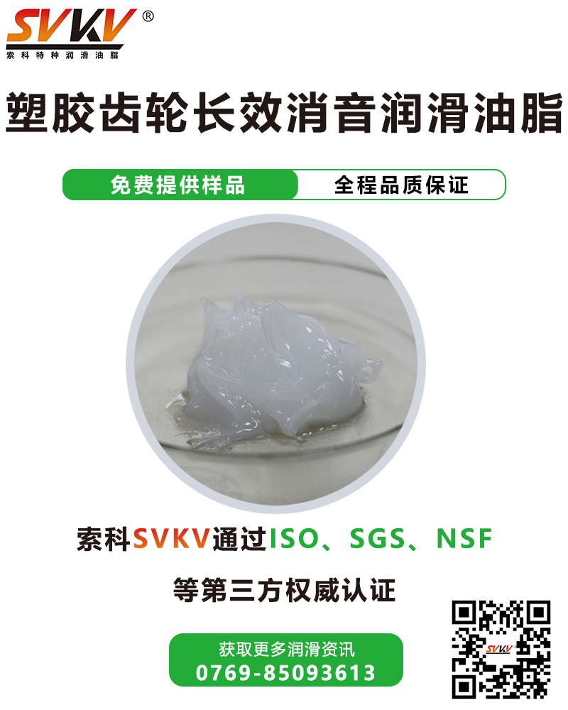 索科SVKV塑膠齒輪長效消音潤滑油脂選用高性能基礎油,并添加多種高效抗氧化、抗腐蝕等添加劑精制而成,是專為塑膠齒輪而研制。索科SVKV塑膠齒輪長效消音潤滑油脂能有效減少齒輪磨損,降低噪音,達到延長齒輪壽命的效果。