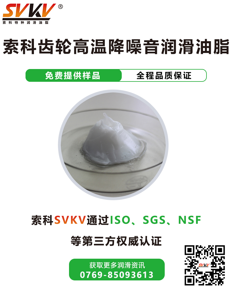 廣東索科潤滑油有限公司是一家致力于裝配產品使用特種潤滑脂的研發、生產、定制、服務為一體的專業性石化企業。致力為制造業客戶,提供專業的選油方案,協助客戶解決產品裝配時的潤滑難題,還可根據客戶特殊需求訂做適合的潤滑油品。有效提高產品性能、減低維護成本,索科助力制造業高端化發展! 主要產品有: 齒輪消音潤滑脂|高溫潤滑脂|食品級潤滑脂|齒輪消音潤滑脂|防水潤滑脂 導電油脂|軸承油|硅油|干性皮膜潤滑劑|低溫潤滑脂|阻尼脂|全氟油脂