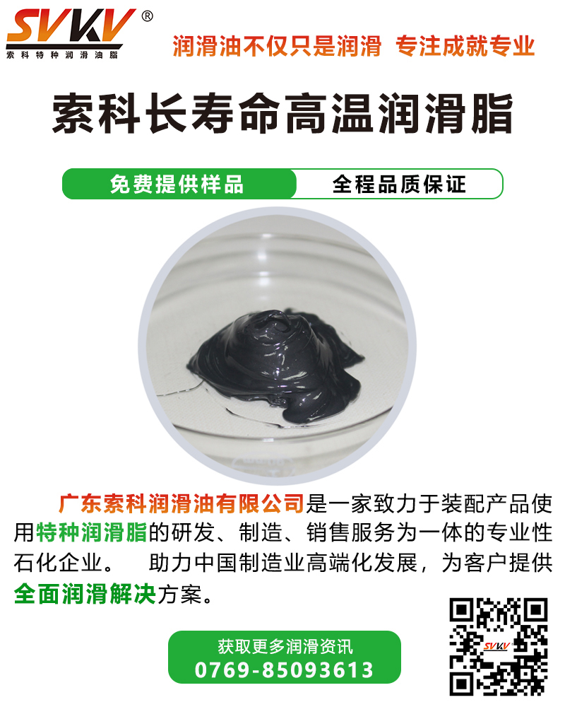 索科SVKV長壽命高溫潤滑脂是以優(yōu)質(zhì)基礎油,添加抗氧、抗磨、防銹等添加劑調(diào)制而成。