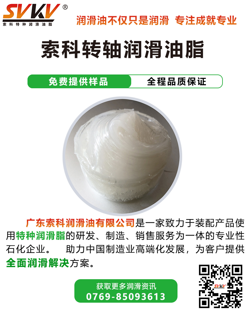 索科潤滑油針對各類轉軸提供專用潤滑脂。索科SVKV轉軸阻尼潤滑脂可以幫助轉軸轉動更加的順暢以及阻尼更加的合適同時也減少了轉軸的磨損,提高了轉軸的使用壽命。