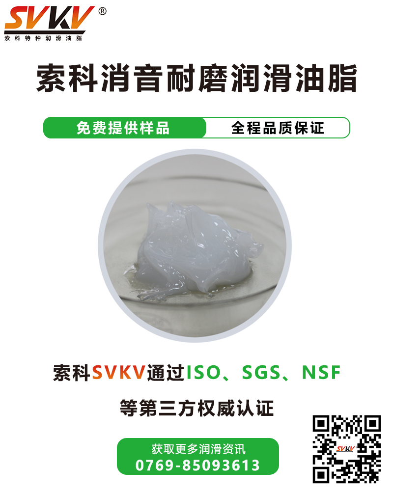索科SVKV消音耐磨潤滑油脂選用高性能基礎油,并添加多種高效抗氧化、抗腐蝕等添加劑精制而成,能有效減少零部件磨損,降低噪音,達到消音潤滑,延長零部件使用壽命的效果。